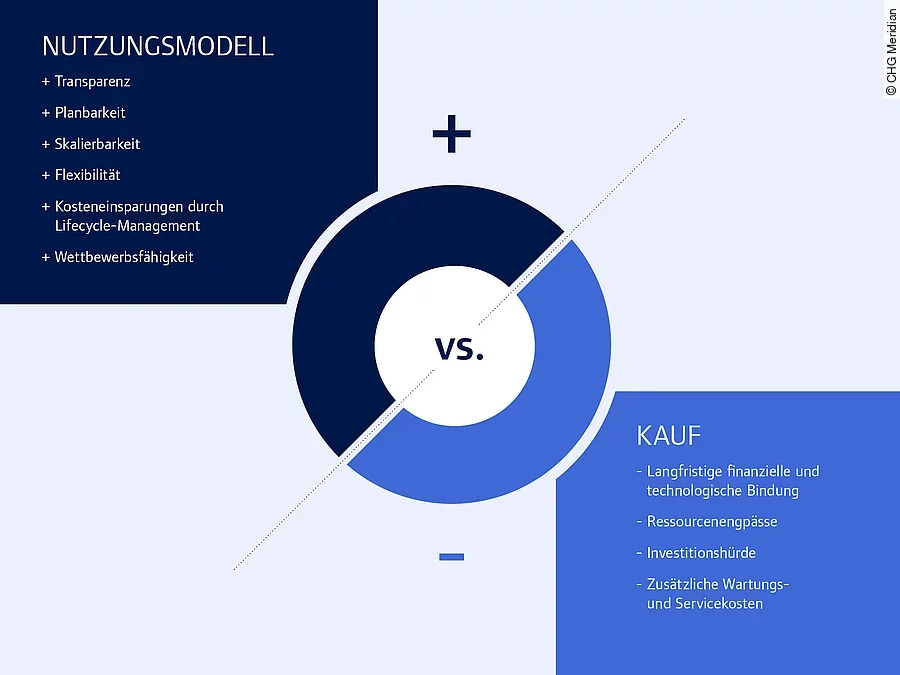 Technologie- und Finanzierungsdienstleister bündeln alle erforderlichen Services und Dienstleistungen in ein „Rundum-Sorglos“ Paket. Einkäufer können auf Basis einer Total-Cost-of-Ownership -Betrachtung schnell erkennen, ob und ab wann sich ein neues Robotik-System wirtschaftlich bezahlt macht. Durch die außergewöhnlich schnellen Innovationszyklen im Bereich Robotik ist eine langfristige Nutzung oft nicht sinnvoll. Der regelmäßige Austausch des OP-Roboters ermöglicht es Krankenhäusern, mit dem medizintechnischen Fortschritt mitzuhalten, ohne sich finanziell zu verausgaben. Im Gegensatz zu klassischen Finanzierungsmethoden wie Darlehen, erhöhen flexible Nutzungskonzepte sowohl die Qualität als auch die Kosteneffizienz und helfen, Ressourcenengpässe zu vermeiden.