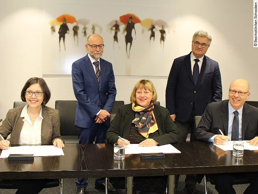 Der heute vom Vorstandsvorsitzenden der Bezirkskliniken Schwaben, Thomas Düll, der Präsidentin der Universität Augsburg, Prof. Dr. Sabine Doering-Manteuffel und der Gründungsdekanin der Medizinischen Fakultät, Prof. Dr. Martina Kadmon, unterzeichnete Vertrag regelt die künftige Zusammenarbeit zwischen der Universität und ihrer Medizinischen Fakultät einerseits und dem Kommunalunternehmen Bezirkskliniken Schwaben andererseits.