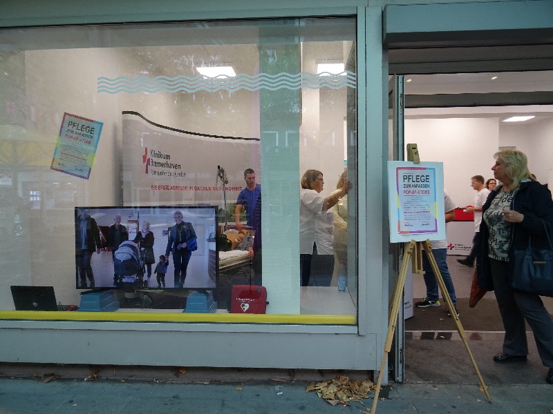 Vom 12.09. – 14.09.2018 konnten sich Interessierte direkt in der Fußgängerzone in Bremerhaven davon überzeugen, dass Pflege mehr ist als nur Bettpfannen und Pflaster zu wechseln. Mitmachen und ausprobieren durfte jeder: Erste-Hilfe-Maßnahmen, Blutentnahme, Infusionsmanagement, an einem Endoskop, an einem Bett und an einer Beatmungsmaschine.