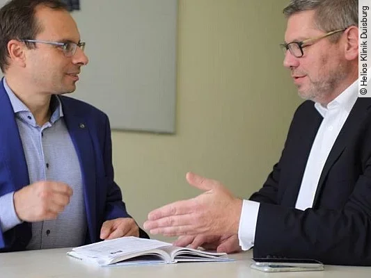 Dafür saßen am Helios Klinikum Duisburg der bisherige Geschäftsführer und sein Nachfolger schon vorher so oft es geht zusammen. Denn Dr. Holger Raphael wechselte zum 1. September auf eigenen Wunsch nach fünf Jahren, in denen er das Klinikum auch durch turbulente Integrationszeiten auf Kurs gebracht hat, nach Essen.