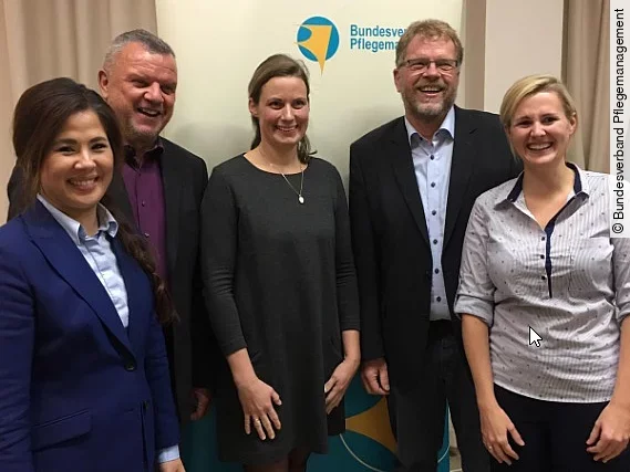 Antje Koeppe, Kathrin Lipp, Isabella Müller und Gerhard Witte stellten sich aus beruflichen und privaten Gründen nicht mehr zur Wahl. Über die jeweiligen Landesgruppen und Arbeitsgruppen werden sie aber weiterhin aktiv die Position des Bundesverbands Pflegemanagement mitgestalten. Peter Bechtel bedankte sich für ihren unermüdlichen Einsatz und die hervorragende Zusammenarbeit in den letzten Jahren. Insgesamt waren der Vorstandsvorsitz sowie vier weitere Vorstandspositionen zu vergeben.