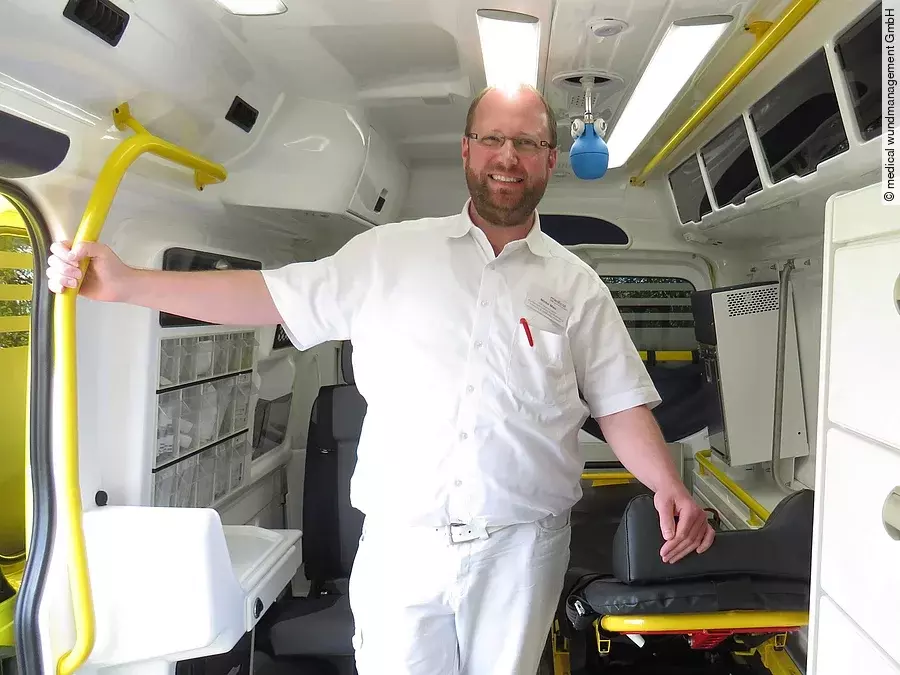 BR: Eine beispielhafte Rolle hat die Tatsache gespielt, dass eine Versorgung innerhalb der Pflegeheime, auf Grund der Ein- und Ausgangssperre zeitweise nicht mehr möglich war. Da haben wir verschiedene Möglichkeiten durchgesprochen, die Behandlung trotzdem aufrecht zu erhalten. Besonders macht das Projekt, dass es im Bereich der Wundversorgung in Deutschland einzigartig ist. Mit dem Wundmobil verfügen wir über einen mobilen Behandlungsraum, der innerhalb von 30s zu 99,9% keimfrei ist.