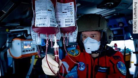 Zwei ADAC Rettungshubschrauber führen bei ihren Einsätzen künftig Blut und Blutgerinnungsprodukte mit an Bord. Das Projekt wird in Kooperation mit den Bundeswehrkrankenhäusern in Ulm und Koblenz durchgeführt.