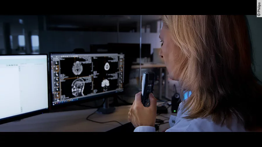 Das Radiology Operations Command Center ist eine Remote Scanning Lösung, die multimodal, also mit MR-, CT- oder PET-CT-Systemen und unabhängig vom Hersteller funktioniert. Sie verbindet MTRs im Command Center mit den MTRs an den Untersuchungsstandorten. Die Remote-Scan-Funktion ermöglicht das Aufschalten auf die Systeme in Echtzeit – von jedem Standort aus. Der Austausch findet über eine bedarfsgesteuerte Chat-, Sprach- und Video-Kollaboration statt, ohne Kompromisse bei Datenschutz und Datensicherheit. Eine Aktualisierung und Vereinheitlichung von Scanprotokollen ist per Fernzugriff möglich, wodurch eine höhere Konsistenz und Qualität in der Diagnostik erreicht wird. Dies trägt zu einer effizienteren und verbesserten Patientenversorgung bei. Die Lösung verfügt über eine EU-Zertifizierung gemäß MDR (Medical Device Regulation) für seine Remote-Scan-Funktion¹. „Philips Remote Scanning funktioniert sowohl mit älteren als auch neueren Systemgenerationen und ist dazu herstellerneutral. Das bedeutet, dass neben Philips auch Systeme anderer Hersteller angebunden werden können“, erklärt Marcus Bataryk, Vertriebsleiter Healthcare Informatics DACH bei Philips. „Die Med 360° kann weiterhin in dem bestehenden Set-up arbeiten und neue Systeme problemlos integrieren.“