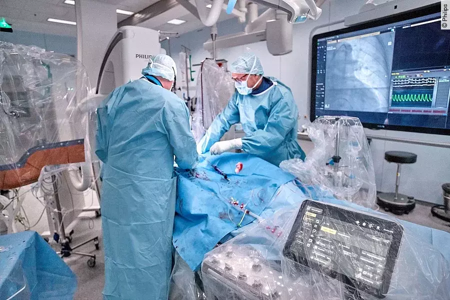 Im Laufe des Jahres 2023 soll zusätzlich ein neuer Hybrid-Operationssaal ausgebaut und unter anderem mit der Azurion Plattform von Philips für bildgestützte Interventionen ausgestattet werden. Für die Patienten bringt der Hybrid-OP eindeutige Vorteile: Er verbessert die medizinischen Möglichkeiten und gestaltet die Eingriffe sicherer. Minimal-invasive Techniken gestalten dabei die Versorgung von Hochrisiko-Patienten sicherer, so dass diese sich nach einem Eingriff schneller erholen.