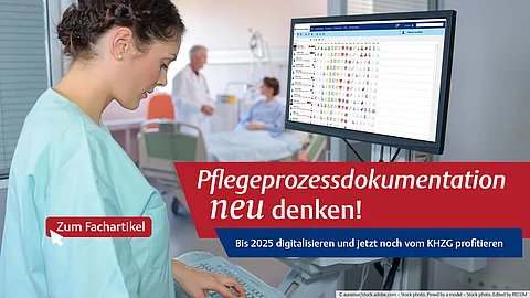 Wie sehen die Anforderungen an die Pflegeprozessdokumentation nach dem KHZG im Detail aus? Welche Kriterien sind dabei zu beachten? Ausführliche Informationen finden Sie im CNE-Fachartikel. Dort werden die zentralen Fördertatbestände zur digitalen Pflegeprozessdokumentation nach § 19 Abs. 1 Satz 1 Nr.3 KHSFV ausführlich vorgestellt und auf Vorteile und Nutzen der Digitalisierung, insbesondere im Bereich der Pflegeprozessdokumentation, eingegangen.
